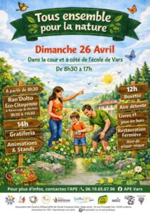 26 AVRIL 2026 – TOUS ENSEMBLE POUR LA NATURE A LA BOIXE 23 avril 202623 avril 2026, Associations, Culture & loisirs, ma commune, Manifestations, accueil Â