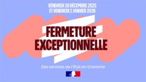 - Fermeture exceptionnelle des services de l’Etat en Charente les vendredis 26 dĂ©cembre 2025 et 2 janvier 2026
